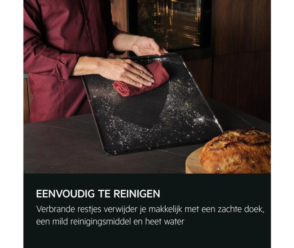 De oven geeft aan wanneer reinigen nodig is. Dankzij de stoomreinigingsfunctie verwijder je vuil gemakkelijk met een vochtige doek, en gebruik je tot 95% minder energie dan bij traditionele pyrolyse-reiniging.
