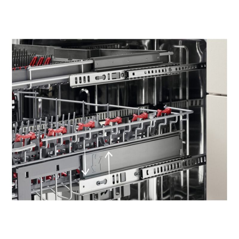 Geniet van het efficiënte gemak dat de QuickLift-korf biedt. Zelfs bij een volledige lading met omvangrijke voorwerpen kun je de hoogte moeiteloos aanpassen, zodat je de vaat gemakkelijk kunt laden of verwijderen.