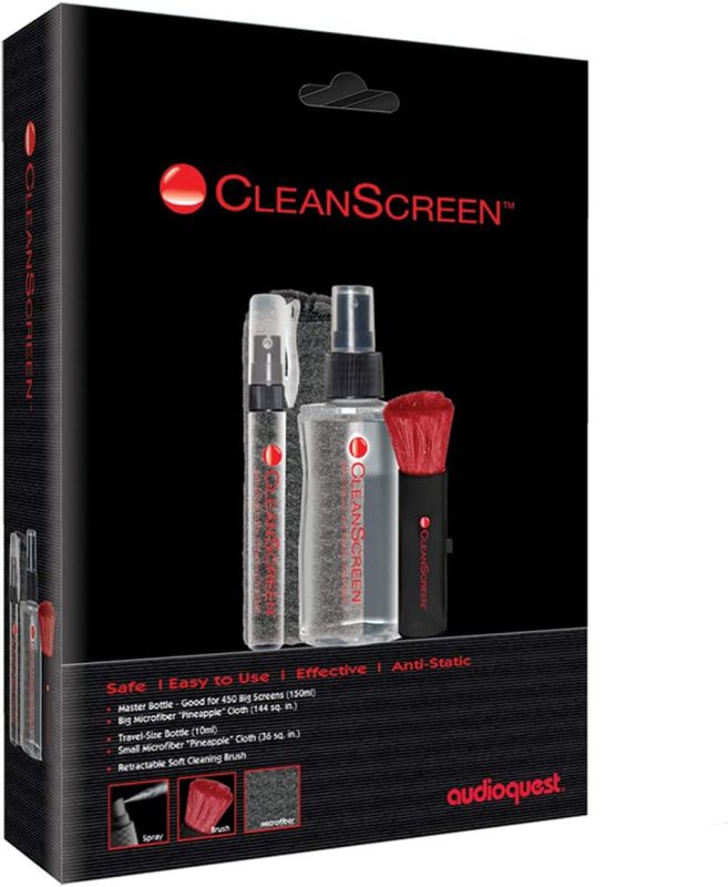 Met de AudioQuest CleanScreen Kit maak je je televisie of beeldscherm schoon zonder beschadiging. Met deze set verwijder je eenvoudig stof en andere vuiligheden. Deze kit laat geen strepen achter in tegenstelling tot andere schoonmaakmiddelen. De meegeleverde borstel en microvezel schoonmaakdoekje reinigen effectief en veilig.