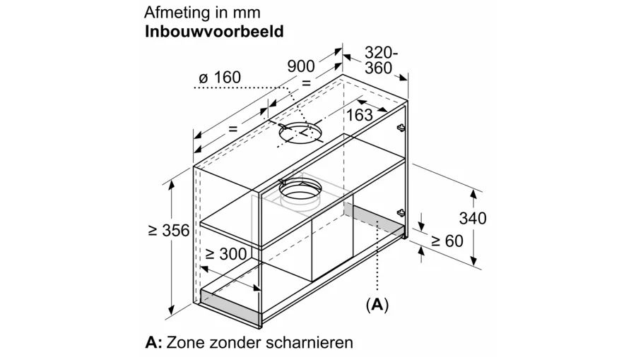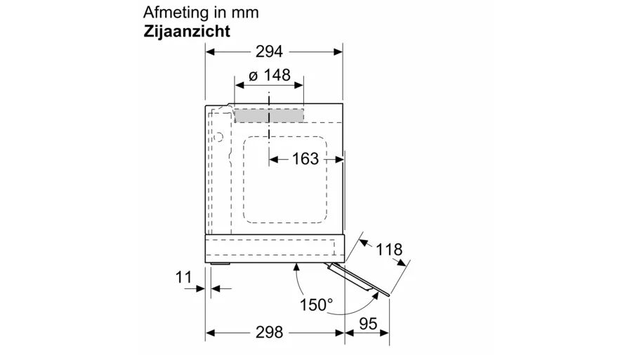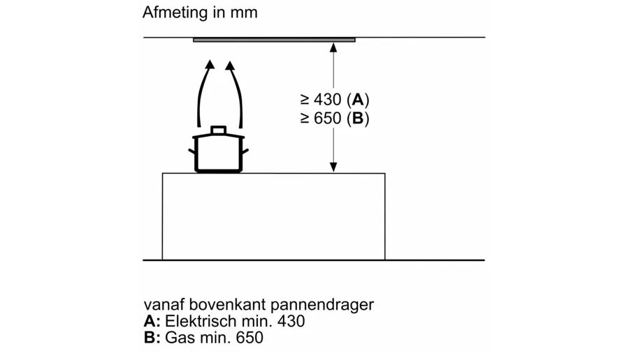 | Minimale montagehoogte kookplaat | 650 mm |