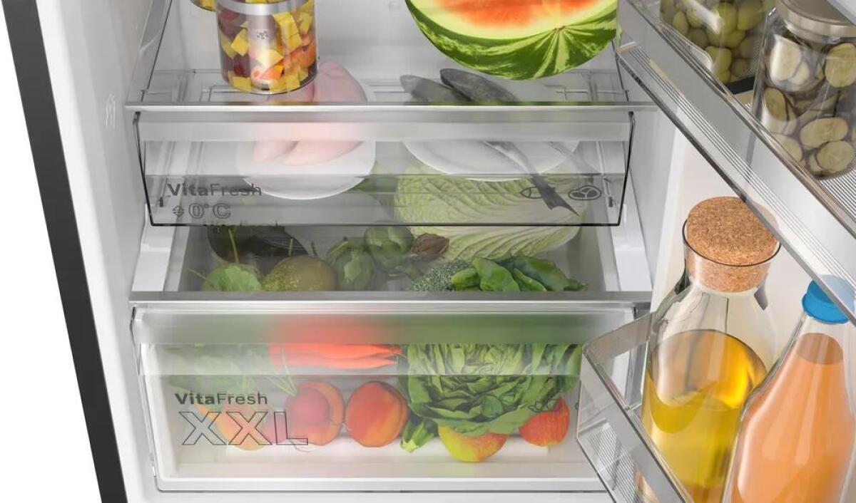 Een van de opmerkelijke kenmerken van de Bosch koelvriescombinatie KGN39EXCF is het VitaFresh systeem. Dit systeem biedt extra ruime lades die ervoor zorgen dat je etenswaren langer vers blijven. Bovendien zorgt de Multi Airflow technologie voor een consistente en gelijkmatige luchtcirculatie, wat bijdraagt aan de versheid van al je voedingsmiddelen. Dankzij deze technologie heb je altijd de beste kwaliteit in je koelkast.