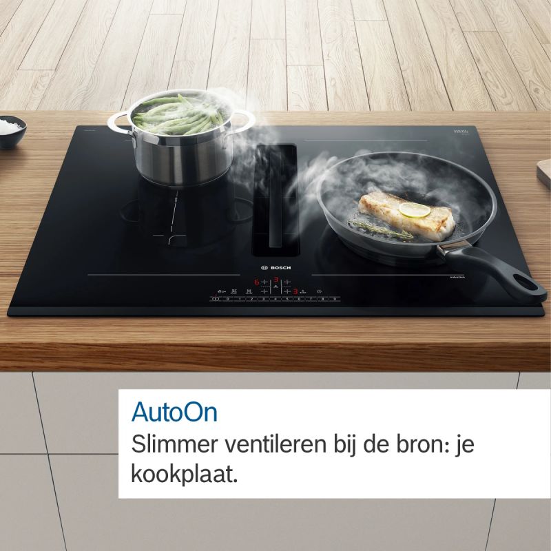 Houd je keuken fris met de geïntegreerde ventilatiemodule: het beste van onze inductiekookplaten en afzuigkappen in één handige oplossing. De module is ingebouwd in je kookplaat, zodat geuren en stoom direct bij de bron verwijderd worden. Een aparte afzuigkap is dus niet meer nodig, en zo houd je meer ruimte over in je keuken, bijvoorbeeld voor keukenkastjes.