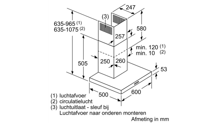 | Minimale luchtafvoer diameter | 120 mm |
