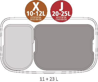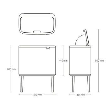 Bo Touch Bin ziet er fantastisch uit en is ongelofelijk handig met afval - met Bo haal je je ideale afvalmanager in huis. Dit is de versie met 2 binnenemmers, 1 van 23 liter en 1 van 11 liter.