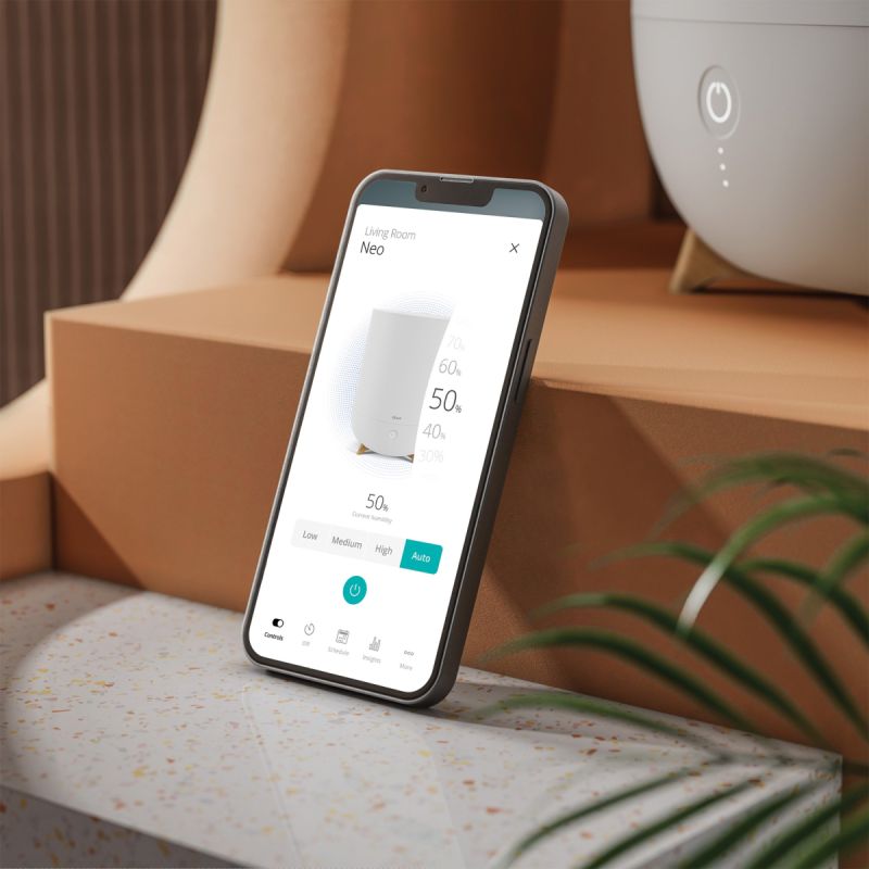 De Duux luchtbevochtiger DXHU33 is niet alleen mooi, maar ook slim ontworpen. Hij beschikt over een ingebouwde hygrostaat die de luchtvochtigheid automatisch aanpast aan jouw voorkeuren. Dit zorgt ervoor dat je in een comfortabele en gezonde omgeving verblijft, zelfs tijdens de koudere maanden wanneer de verwarming aan is. De onderhoudsbehoefte is laag dankzij het vervangbare filter, dat de nevel gezond en hygiënisch houdt.