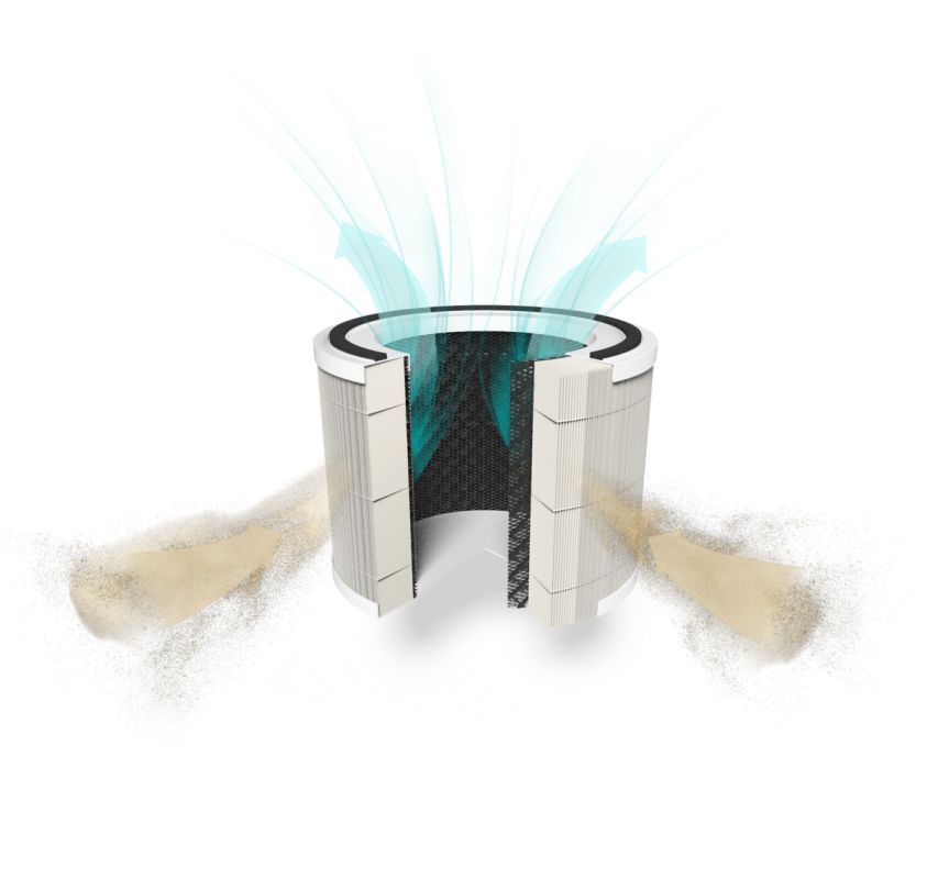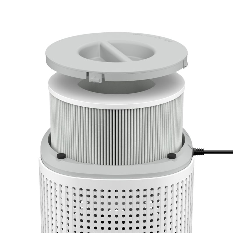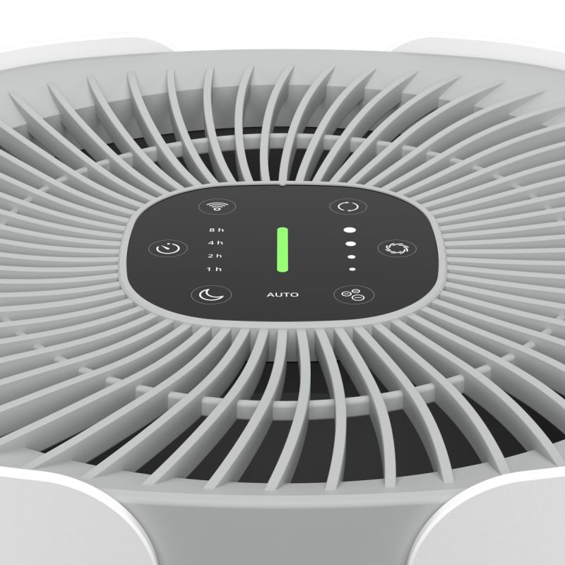 De luchtkwaliteitssensor meet de lucht in uw huis om ervoor te zorgen dat schadelijke stoffen en andere gevaarlijke deeltjes, zoals PM2.5, worden gedetecteerd en gefilterd, en past zich automatisch aan wanneer dat nodig is (1/30 van de breedte van een mensenhaar, PM2.5 is een 2,5 micrometer deeltje dat grote gezondheidsproblemen kan veroorzaken). De luchtkwaliteitsindicator geeft de status weer en knippert wanneer het filter moet worden vervangen. Een timer zorgt voor automatische uitschakeling en de nachtmodus zorgt voor een stille werking en een donker display.