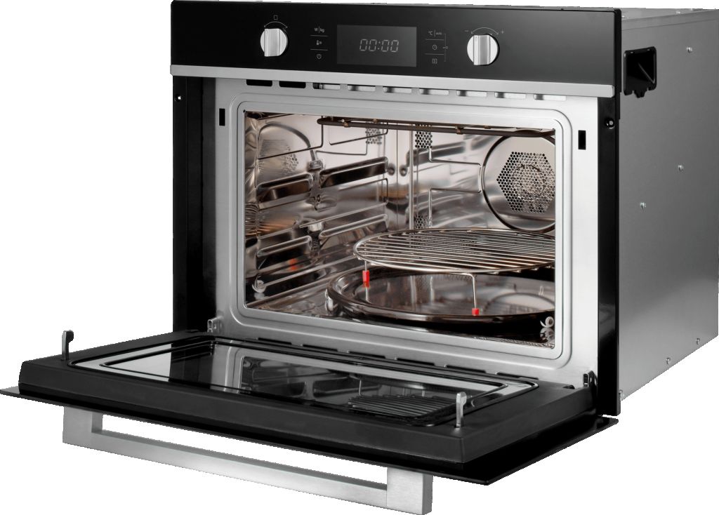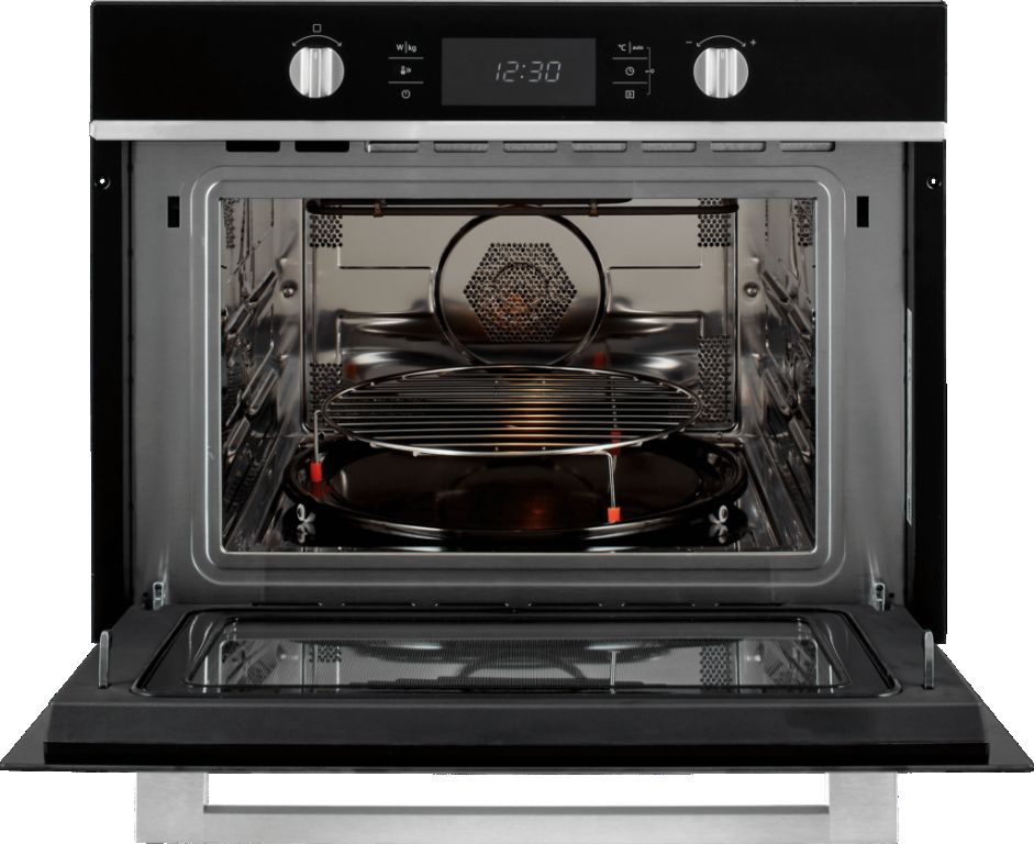 De CM244ZT is onderdeel van de Trendlijn waarbij modern glasdesign wordt gecombineerd met subtiele RVS accenten. Je bedient hem met 2 draaiknoppen en tiptoetsen op het scherm. Het display geeft alle belangrijke informatie weer, hoe lang duurt het nog voordat iets klaar is, de temperatuur, het vermogen, de verschillende functies, enz.