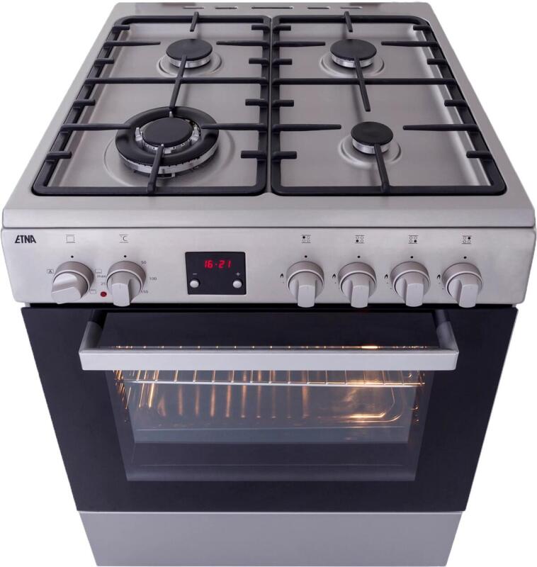 De Etna gasfornuis met oven FGV460RVS is uitgerust met meerdere handige functies, waaronder een digitale timer en een heteluchtfunctie. De oven heeft een nettoinhoud van 65 liter, wat voldoende ruimte biedt voor het bakken van pizza's, taarten en zelfs lasagnes. Dankzij de geëmailleerde ovenruimte is schoonmaken een fluitje van een cent. De geïntegreerde vonkontsteking in de knoppen zorgt ervoor dat je de branders moeiteloos aansteekt.