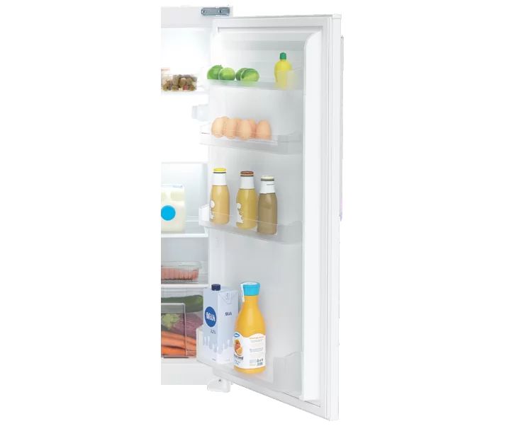 De KVS6102 van ETNA een stille koelkast met slechts 38 dB (A) en daarom zeer geschikt voor in een open keuken. Deze inbouw koelkast heeft bovenin een handig vriesvak van 17 liter. Met 130 liter inhoud in het koelgedeelte is er voldoende koelruimte voor alle boodschappen. Dit koelgedeelte wordt automatisch ontdooit en is voorzien van LED verlichting. Speciaal voor groenten is er een ruime lade, andere etenswaren kunnen worden bewaard op een van drie legplateaus van veiligheidsglas met lekrand. De schappen in de deur zijn verstelbaar, zodat grotere flessen altijd passen. Dit model wordt ingebouwd met het sleepdeursysteem, waarbij de koelkastdeur met een sleepgeleider aan het keukenpaneel gemaakt wordt. De draairichting van de deur kan voor de plaatsing bepaald worden. De ETNA KVS6102 is niet alleen flexibel maar ook duurzaam dankzij het E energielabel.