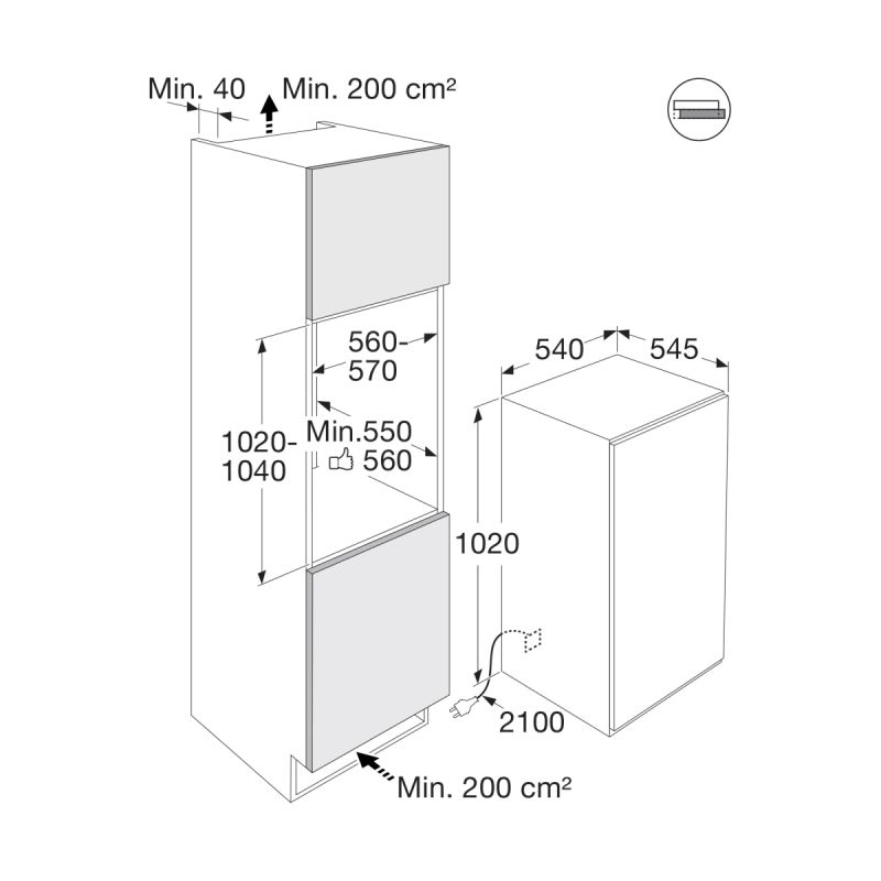 | Min. nisdiepte | 550 mm |