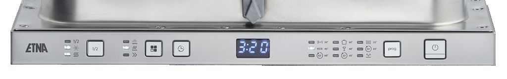 De ETNA VW47SM geïntegreerde vaatwasser is met een breedte van 45 cm bescheiden in formaat maar royaal in comfort en gemak. Zo heeft de vaatwasser maar liefst negen verschillende programma’s, variërend van snel spoelen tot eco of juist intensief. Daarnaast geeft de vaatwasser je keuze uit vijf reinigingstemperaturen, in te stellen op het RVS bedieningspaneel. De VW47SM biedt ruimte aan negen couverts maar is ook op halve belading in te stellen wanneer je wat minder afwas hebt. De start van een wasprogramma is tot 24 uur uit te stellen, zodat alles klaar is wanneer het je het beste uitkomt. De vaatwasser controleert automatisch of er voldoende zout en glansmiddel is en heeft een digitaal display met resttijdindicatie. Tot slot droogt deze luxe vaatwasser met restwarmte, wat energie bespaart en bovendien sneller is.