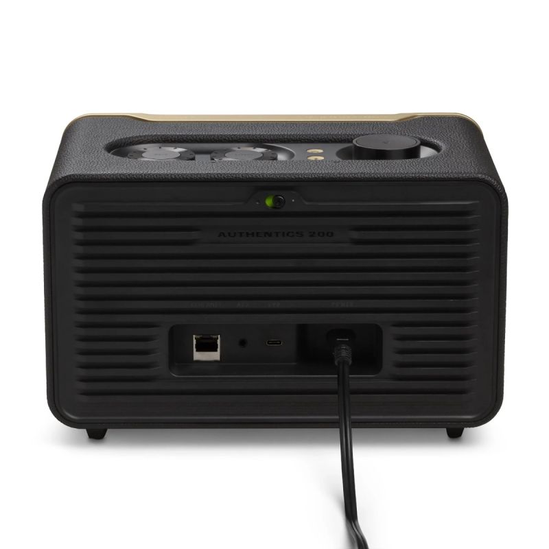 De JBL Authentics 200 is geïnspireerd op klassieke traditionele ontwerpen van JBL voor een look die elke kamer en elke ruimte, hoe groot of klein ook, vult met superieur JBL-geluid. En de handige gegoten aluminium handgreep, de speciale behuizing in leerlook en het vernieuwde Quadrex-front laten zien dat er aan elk detail aandacht is bestaat. Tot en met het speciale kenmerkende JBL-patroon rond de naar beneden gerichte passieve radiator.