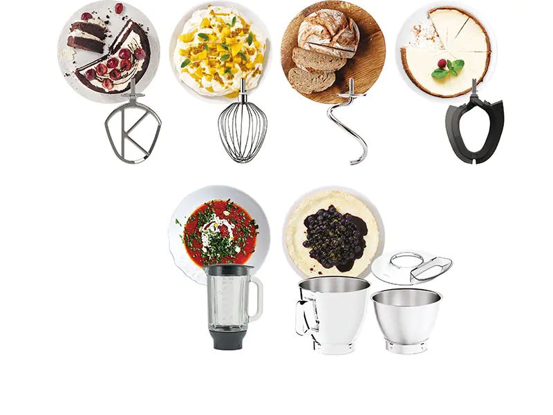 Onze kenmerkende K-Klopper is voorzien van twee roestvrijstalen bakhulpstukken: een deeghulpstuk en garde. Plus een flexiklopper. Pak elke taak met vertrouwen aan. Ze zijn allemaal vaatwasbestendig voor eenvoudige reiniging.