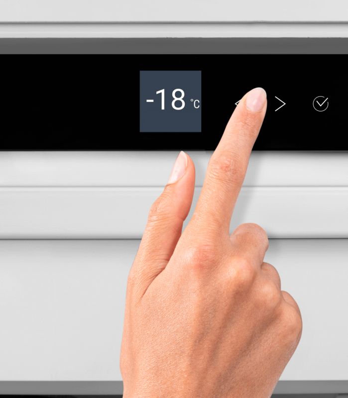 Dankzij het heldere Touch display kunnen alle functies gemakkelijk worden bediend. Het temperatuurdisplay geeft de actuele temperatuur van het koel- en/of vriesdeel weer. Met de duidelijk pijlsymbolen kan heel eenvoudig door het menu genavigeerd worden.