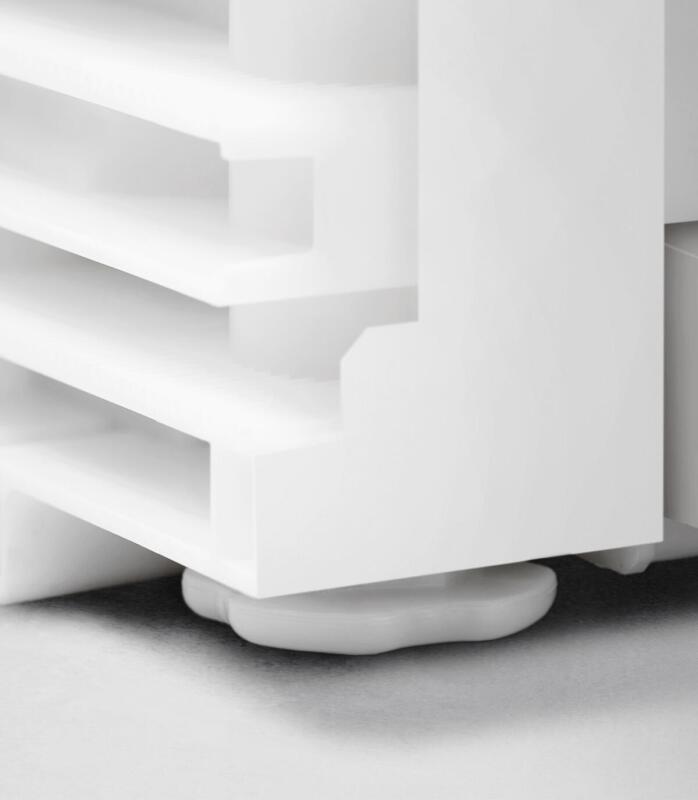 Dankzij de in hoogte verstelbare pootjes kunnen de apparaten optimaal worden afgesteld. Hierdoor staat het apparaat altijd stabiel.