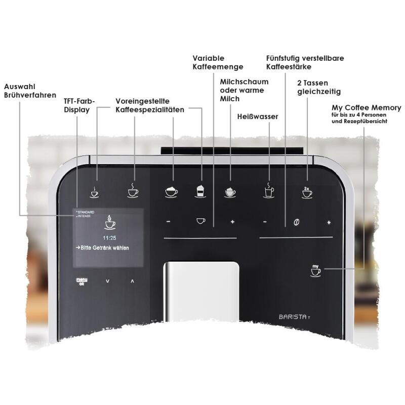 Geluidsarme toptechnologie: dankzij het fluisterstille maalwerk hoef je geen gesprek meer te onderbreken en ook 's ochtends maak je niemand wakker door het zetten van je koffie. Hiervoor werd aan de Barista T Smart® als één van de eerste volautomatische koffiemachines het kwaliteitszegel „Quiet Mark“ toegekend. Voor een heerlijk kopje koffie op elk moment.