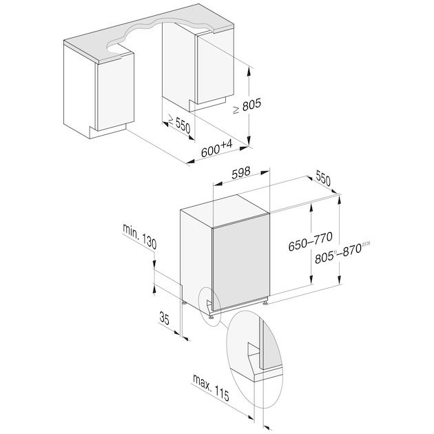 | Min. nisdiepte | 550 mm |