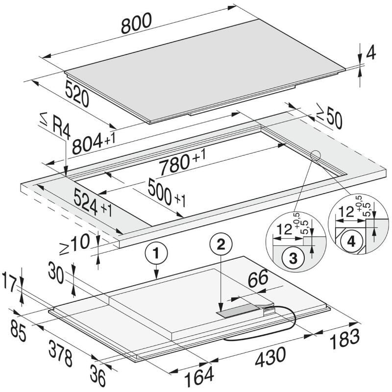 - In 800 mm breed voor integratie in of plaatsing op het werkblad