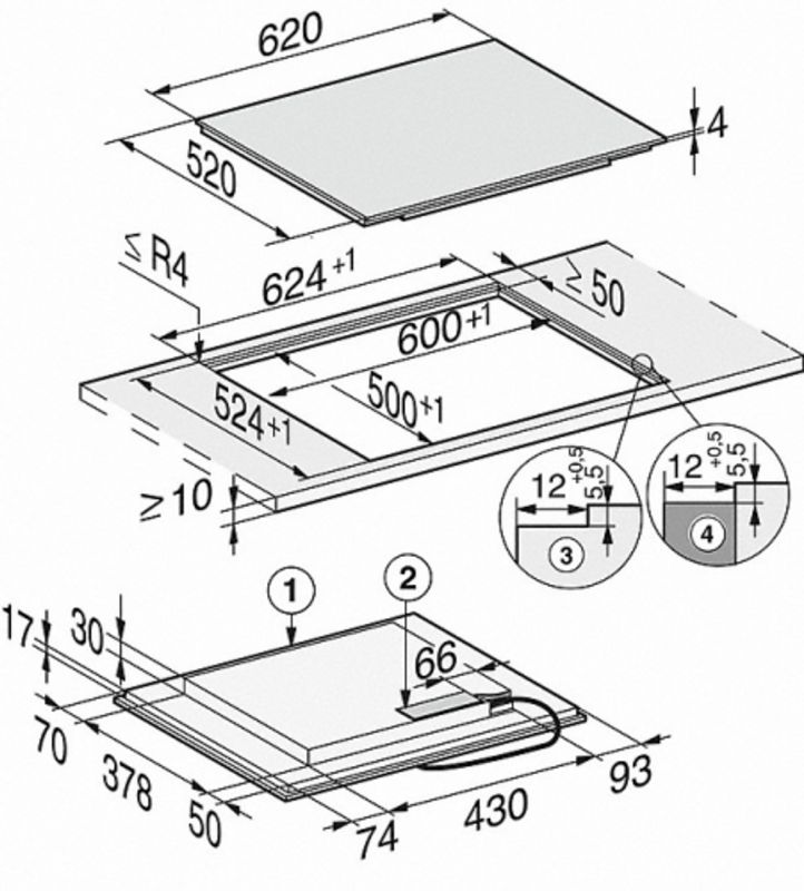 - In 620 mm breed voor integratie in of plaatsing op het werkblad