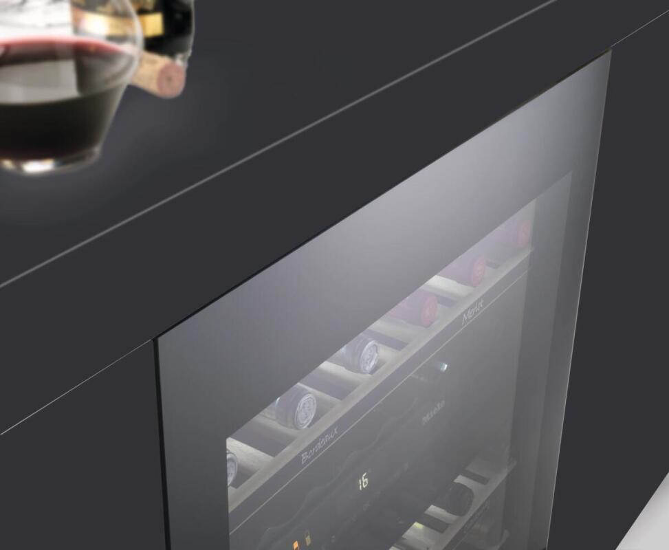 Om uw wijnflessen behoedzaam te bewaren zijn in de wijnklimaatkasten van Miele een paar speciaal geoptimaliseerde onderdelen verwerkt: de op looprust geoptimaliseerde compressor is mechanisch losgekoppeld van de behuizing. Zo ligt uw wijn altijd rustig.
