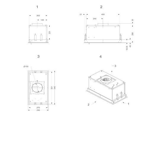 - Inbouwgroep in inox voor decoratieve schouw of luifel.