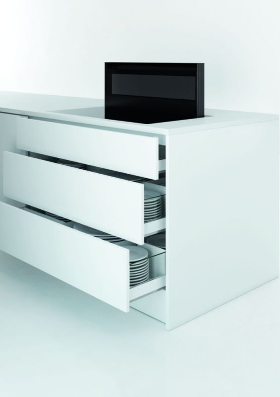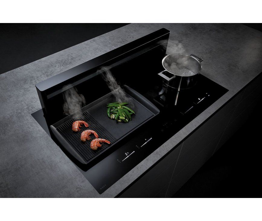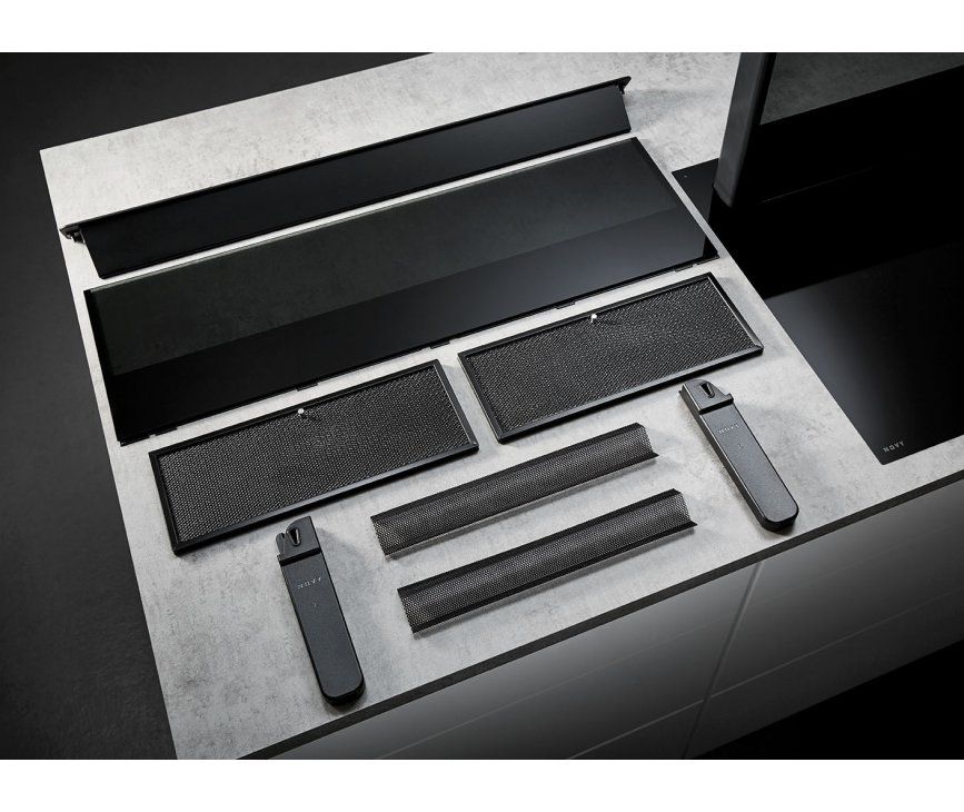 Na het koken verdwijnt de ventilatietoren weer in de kookplaat. Dit geeft visuele rust in de keuken.