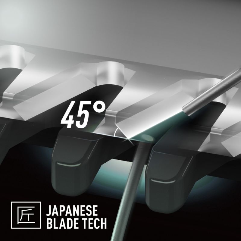 De trimmer heeft scherpe 45° nanogepolijste roestvrijstalen bladen voor prachtige resultaten, die gemaakt zijn met de nieuwste Japanse bladtechnologie. De duurzame, scherpe snijranden zijn ontworpen om gemakkelijk alle haartypen aan te kunnen - van fijn en onhandelbaar, tot dik en dicht.