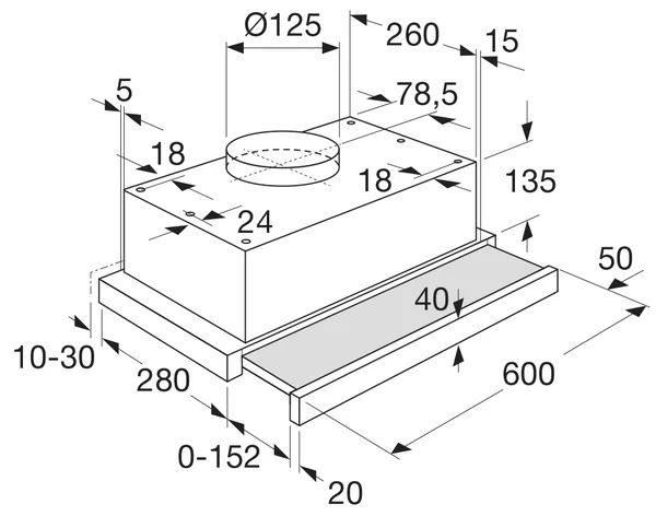 Een mooie, onopvallende afzuigkap, dat is deze inbouw vlakscherm afzuigkap mét LED verlichting van Pelgrim (2 x 3 W LED lampen). Je bedient de afzuigkap eenvoudig met behulp van mechanische toetsen. Handig: de aluminium cassettes zijn uitneembaar en daardoor makkelijk te reinigen. En het glazen uitschuifbare scherm zorgt voor extra kijk- en schoonmaakgemak. Let op: deze afzuigkap is alleen geschikt voor een centraal afzuigsysteem.