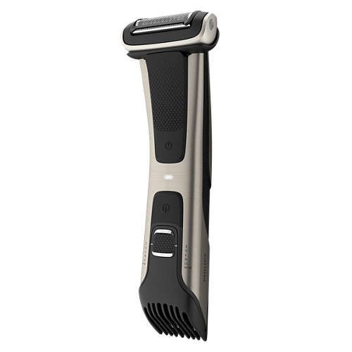 Levert een comfortabel en kort resultaat onder de douche en daarbuiten. De bodygroomer is volledig waterbestendig, dus u kunt het apparaat gewoon schoonspoelen als u klaar bent. Bij langer haar werkt de trimmer mogelijk beter op droog haar.