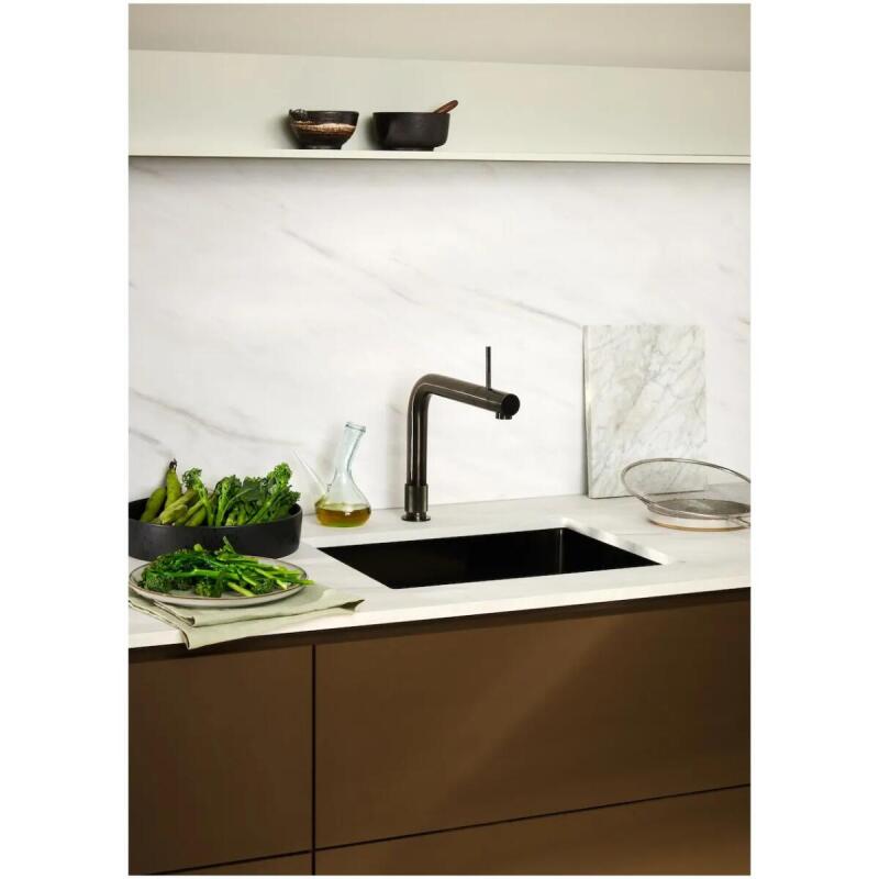 Met de Quooker Front Gunmetal voeg je niet alleen een blikvanger toe aan je keuken, maar ook een uiterst praktische oplossing. Deze elegante kraan levert koud, warm én direct kokend water uit één en dezelfde uitloop – ideaal voor wie gemak en design weet te waarderen.