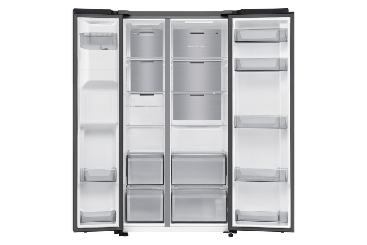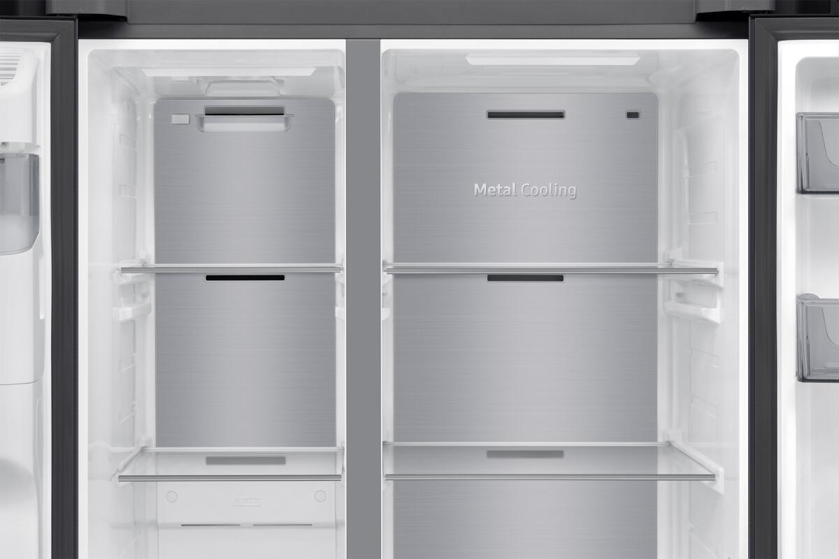De unieke SpaceMax™ technologie zorgt ervoor dat de wanden van de Samsung RS70F64KEFEF dunner zijn, waardoor je meer binnenruimte hebt zonder dat de afmetingen van de koelkast toenemen. Dit stelt je in staat om al jouw boodschappen te organiseren zonder dat je je zorgen hoeft te maken over ruimtegebrek. De vlakke koelafvoer voorkomt “dode ruimte” en maximaliseert de opslagcapaciteit.