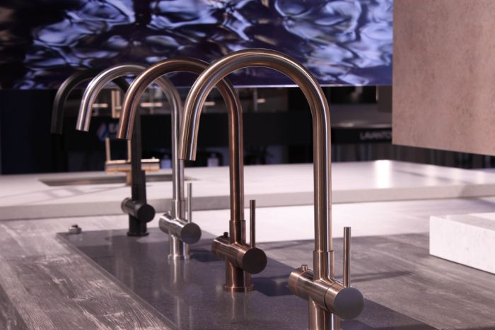 De Selsiuz rond gold is een 100% geborsteld rvs keukenmengkraan die met één hendel zowel koud als warm water bedient. Dankzij het design en de kleur kunt u deze uitvoering uitstekend combineren met andere artikelen zoals spoelbakken, verlichting en zeepdispensers.