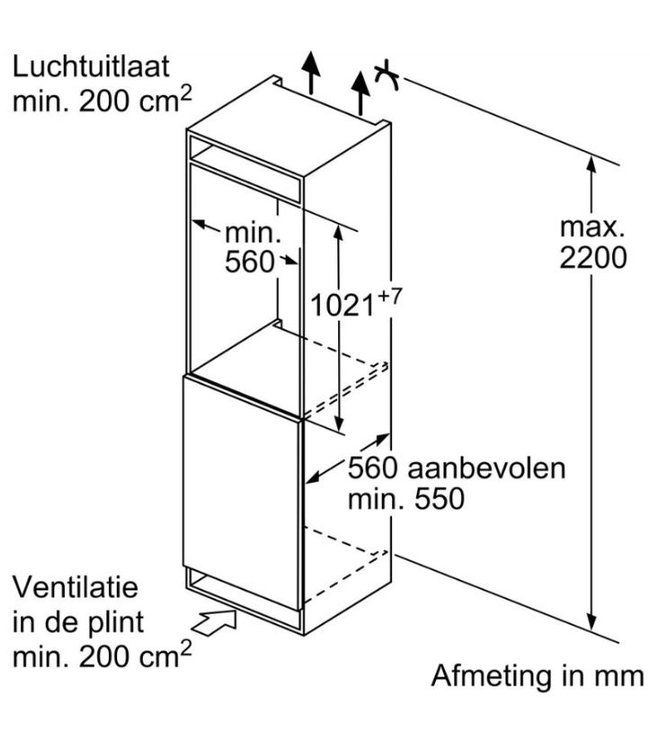 | Min. nisdiepte | 550 mm |