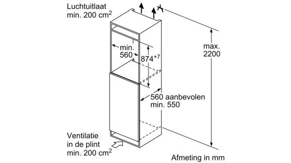| Min. nisdiepte | 550 mm |