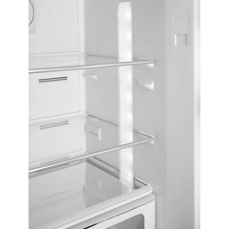 Met de Smeg koelvriescombinatie FAB32RPG5 haal je niet alleen een koelkast in huis, maar ook een stukje geschiedenis. De jaren '50 esthetiek geeft je keuken karakter, terwijl de moderne functionaliteiten ervoor zorgen dat je voedsel langer vers blijft. Dankzij het digitale LED-display heb je de temperatuur van zowel het koel- als vriesgedeelte altijd onder controle. Dit zorgt voor een optimale opslag van al je bederfelijke waar, van groenten tot vlees en vis.