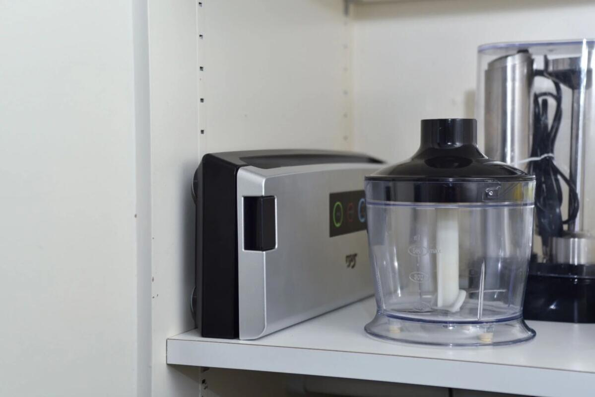 Dit vacuümverpakkingssysteem is niet alleen functioneel, maar ook ontworpen met oog voor ruimtebesparing. Je kunt het apparaat op zijn zijkant of achterkant opbergen, wat het een ideale aanvulling maakt voor elke keuken. Daarnaast is er een handig opbergvak waarin je het netsnoer kunt opbergen, wat zorgt voor een opgeruimde uitstraling.