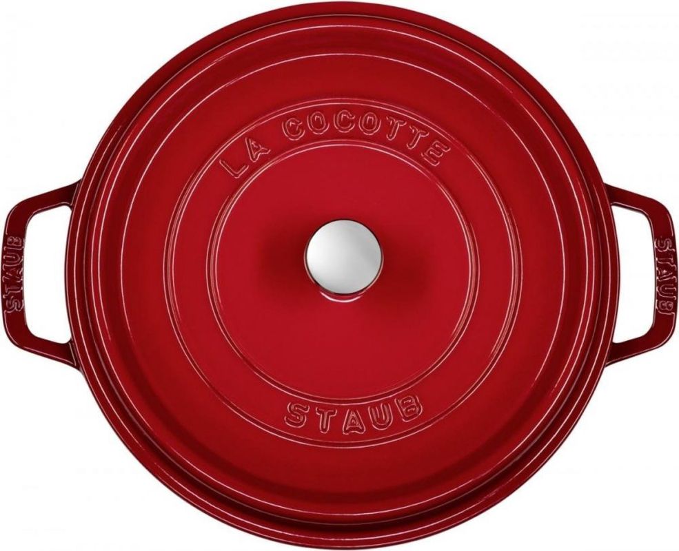 Traag gegaarde gerechten zijn helemaal in en jonge koks willen deze kunst net zo graag beheersen als ervaren chefs. De unieke smaken van 'slow-cooked' vlees en groenten ontwikkelen zich optimaal in een braadpan, zoals deze ronde kersenrode cocotte van Staub. Hij heeft niet alleen een mooi, eenvoudig design, maar bestaat ook uitzonderlijke materialen. Met haar diameter van 26 cm is deze braadpan de ideale keukenpartner voor kleine gezinnen of singles. De cocotte heeft een inhoud van 5,2 l en is perfect om een kleinere hoeveelheid groenten, vis of vlees te bereiden. Aan de binnenzijde is de cocotte afgewerkt met matzwart email om het voedsel perfect dicht te schroeien en de natuurlijke smaken in de ingrediënten te verzegelen. De eigenschappen van het materiaal worden alleen maar beter naarmate u de pot vaker gebruikt. Natuurlijk is de Staub cocotte geschikt voor alle kookoppervlakken. Dankzij de combinatie van gietijzer en email wordt de warmte perfect verspreid in de cocotte. Gietijzer is snel en gemakkelijk te reinigen en tegelijk uiterst slijtvast. Ontdek zelf hoe praktisch de Staub cocotte is en creëer moeiteloos hemelse stoofschotels in uw eigen keuken.