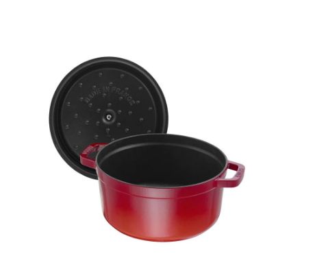 Traag gegaarde gerechten zijn helemaal in en jonge koks willen deze kunst net zo graag beheersen als ervaren chefs. De unieke smaken van 'slow-cooked' vlees en groenten ontwikkelen zich optimaal in een braadpan, zoals deze ronde cocotte van Staub in de blauwe kleur 'La Mer'. Hij heeft niet alleen een mooi, eenvoudig design, maar bestaat ook uitzonderlijke materialen. Met haar diameter van 28 cm is deze braadpan de ideale keukenpartner voor kleine gezinnen of singles. De cocotte heeft een inhoud van 6,7 l en is perfect om een kleinere hoeveelheid groenten, vis of vlees te bereiden. Aan de binnenzijde is de cocotte afgewerkt met matzwart email om het voedsel perfect dicht te schroeien en de natuurlijke smaken in de ingrediënten te verzegelen. De eigenschappen van het materiaal worden alleen maar beter naarmate u de pot vaker gebruikt. Natuurlijk is de Staub cocotte geschikt voor alle kookoppervlakken. Dankzij de combinatie van gietijzer en email wordt de warmte perfect verspreid in de cocotte. Gietijzer is snel en gemakkelijk te reinigen en tegelijk uiterst slijtvast. Ontdek zelf hoe praktisch de Staub cocotte is en creëer moeiteloos hemelse stoofschotels in uw eigen keuken.