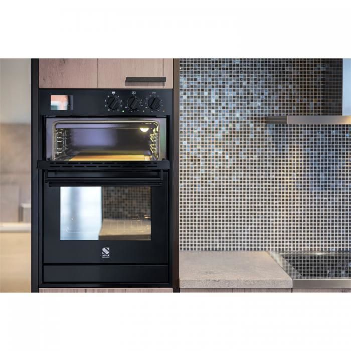 De bovenste oven is een pizza oven, waarin je zelf de heerlijkste pizza's maakt. De oven heeft vier standen en wordt geleverd met een pizzasteen. 34 Liter