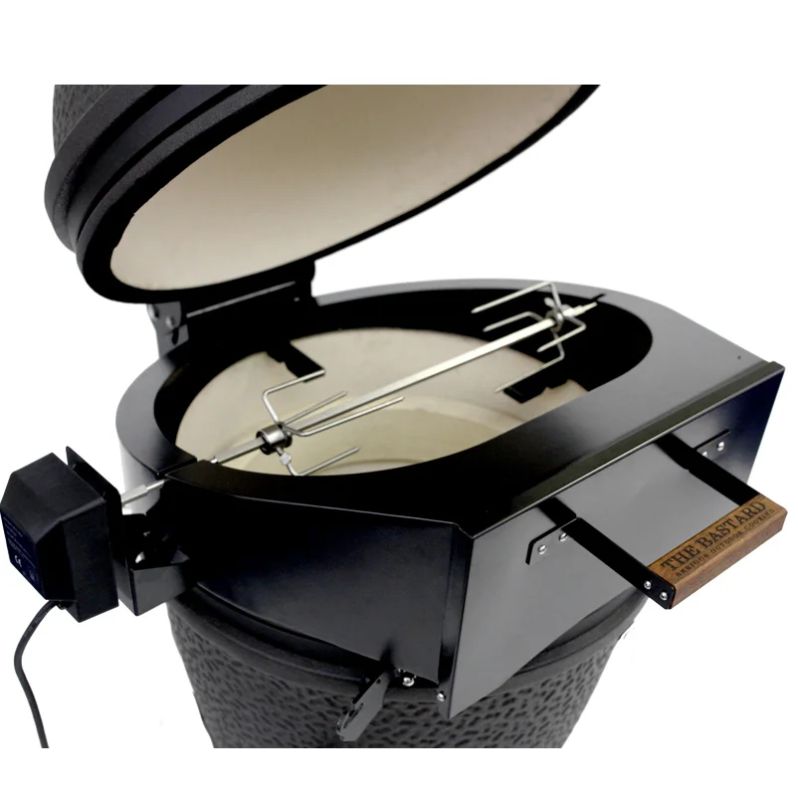 De The Bastard Rotisserie - Pizza beschikt over een demontabel draaispit dat is uitgerust met een krachtige motor en grote klauwen. Dit maakt het eenvoudig om jouw gerechten gelijkmatig te garen, wat resulteert in een smakenpalet dat je gasten zal verbazen. Of je nu wilt genieten van sappig vlees of een knapperige pizza, met dit accessoire is het allemaal mogelijk in jouw eigen achtertuin.