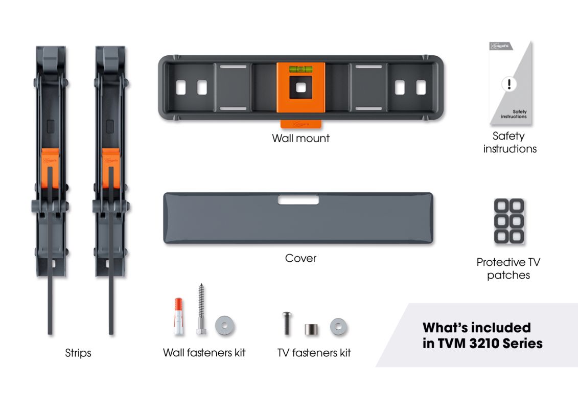 Je installeert de COMFORT kantelbare tv beugel snel en makkelijk. Om je daarbij te helpen hebben we een boormal, schroeven, fischer® DuoPower pluggen alvast bijgesloten in de verpakking. De beugel zelf heeft een ingebouwde waterpas. Hoe je alles installeert lees je in de Quick Installation Guide. Online kun je ook de uitgebreide handleiding en de speciale installatievideo bekijken.