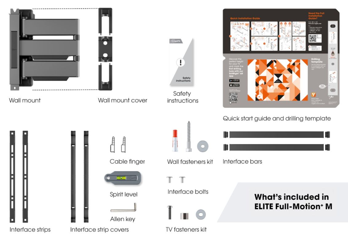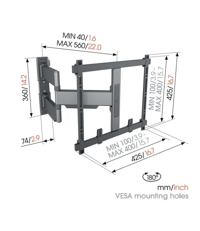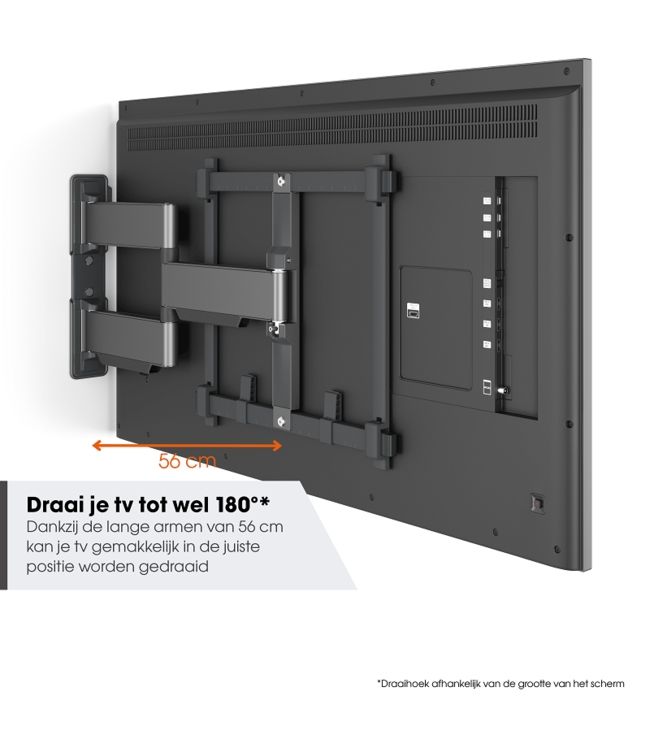• De ELITE Full-Motion+ tv-beugel beschikt over 56 cm lange draagarmen.