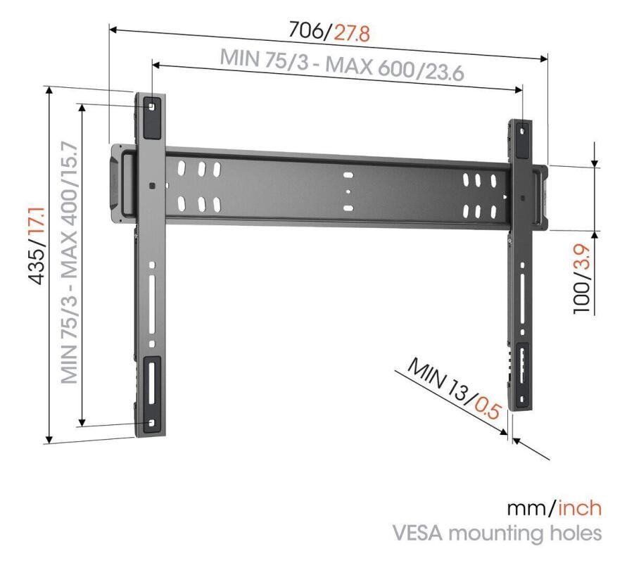 De Vogel`s TV beugel TVM 5705 is de ideale oplossing voor het veilig en stijlvol ophangen van jouw premium tv. Met een uitzonderlijk dun ontwerp van slechts 1,3 cm van de muur, biedt deze beugel niet alleen een minimalistische uitstraling, maar ook een ongekende stabiliteit. Geschikt voor tv’s tot maar liefst 110 inch, zorgt deze beugel ervoor dat je grote scherm perfect aan de muur hangt en een luxe uitstraling krijgt.