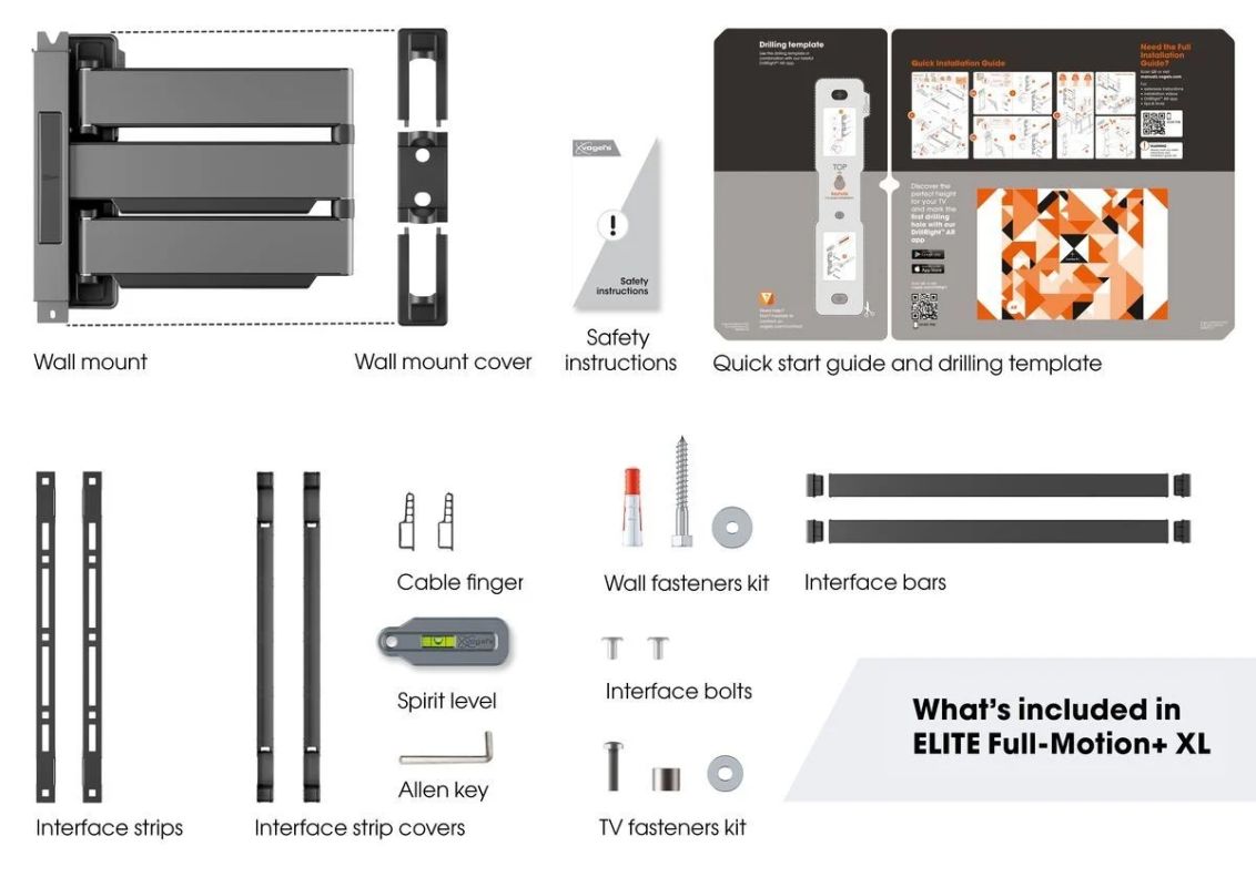Draaibare, ultraslanke tv-beugel voor high-end tv’s van 55 tot 100 inch De ELITE Full-Motion+ tv-beugel is speciaal ontworpen om grote tv’s volledig tot hun recht te laten komen. Perfect dus voor jouw OLED- of QLED-tv. De tv-muurbeugel is ultraslank, ultrasterk en tot maar liefst 180° draaibaar, zodat je vanuit elke hoek optimaal kunt genieten van je tv.
