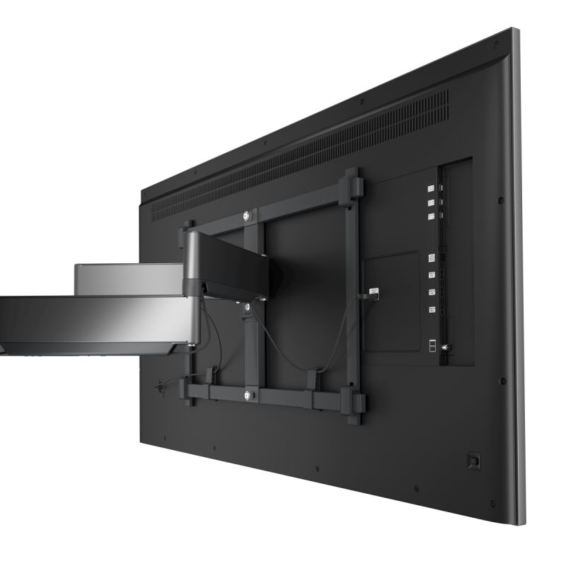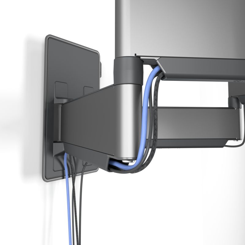 Bij een tv die mooi strak aan de muur hangt, zie je liever geen kabels. Bij de ELITE Forward Motion tv-beugel leidt het unieke Cable Inlay System (CIS®) de kabels door de draagarmen en verbergt het alles netjes aan de achterkant van de tv met speciale kabelhouders.