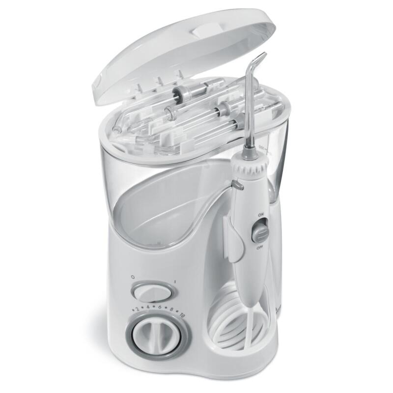 De Waterpik WF-100EU beschikt over een modern ontwerp, dat niet alleen kleiner en stiller is dan eerdere modellen, maar ook over tien drukinstellingen om jouw persoonlijke voorkeur te kunnen bedienen. Met het 90-seconden reservoir en de mogelijkheid om mondwater toe te voegen, maak je jouw mondverzorging nog effectiever. Dit apparaat is speciaal ontworpen om diep tussen de tanden en onder de tandvleesrand te reinigen, waar andere middelen niet bij kunnen.