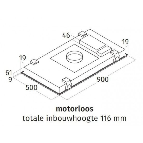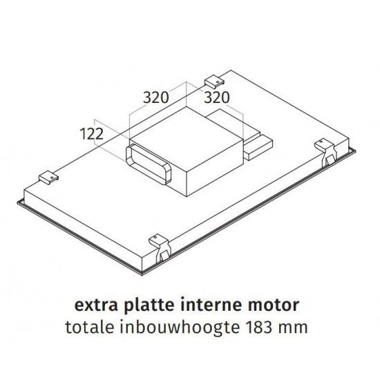 - extra platte interne motor 970 m3 /h - 67 dBA - max. 145 W - afvoer 230 x 80 mm