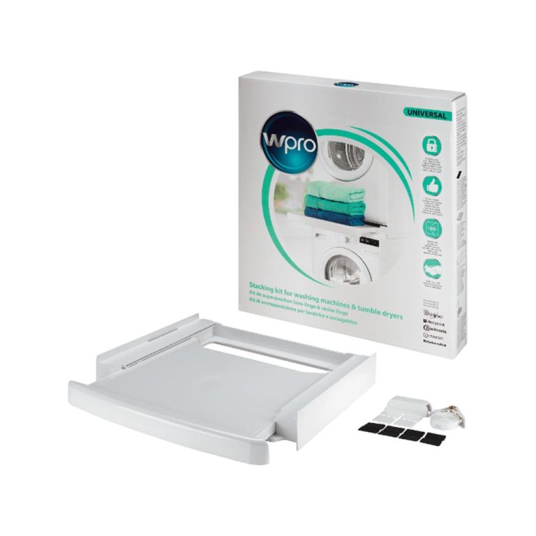 Met de Wpro Universeel stapelkit kies je voor kwaliteit en gebruiksgemak. Deze kit is ontworpen om een stevige en betrouwbare verbinding te bieden tussen jouw wasmachine en droger. De montage is eenvoudig en snel, waardoor je in een handomdraai jouw apparaten kunt stapelen. Het verbeteren van jouw wooncomfort begint met efficiënte oplossingen, en deze stapelkit is daar een perfect voorbeeld van.